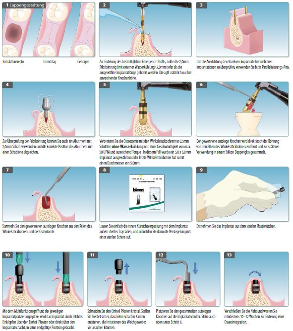 Bitte beachten Sie die Informationen, Empfehlungen und Angaben zum benötigten Durchmesser gemäß der Bohrsequenz. Für das Implantat benötigen Sie folgende Bohrer: